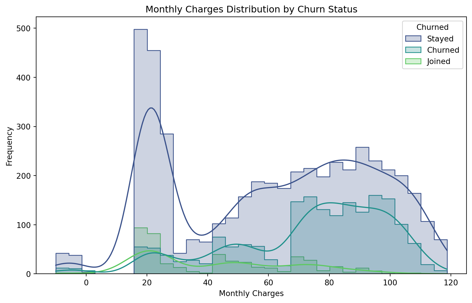 - Monthly Charges: Higher charges increase churn likelihood (coef = 0.0296, p < 0.000). Figure 2 also supports this claim.
